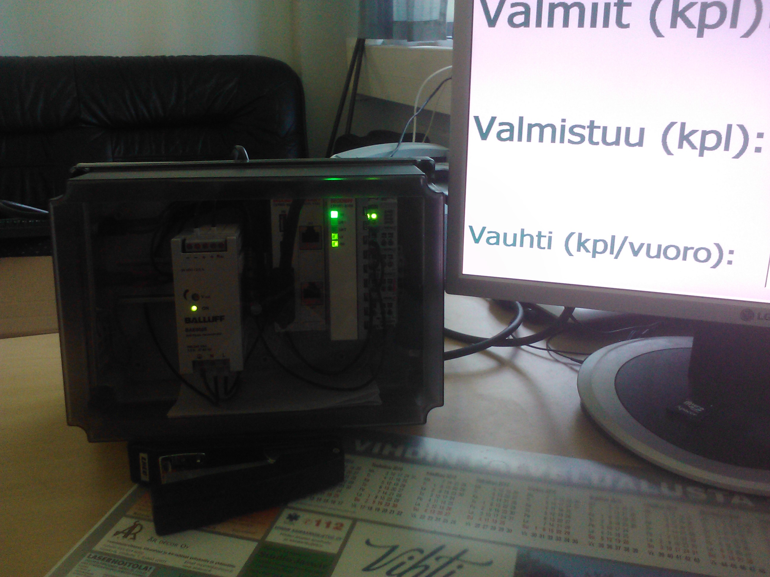 Device has potential free input for pulse signal from relay or other switch. One pulse means one produced product.